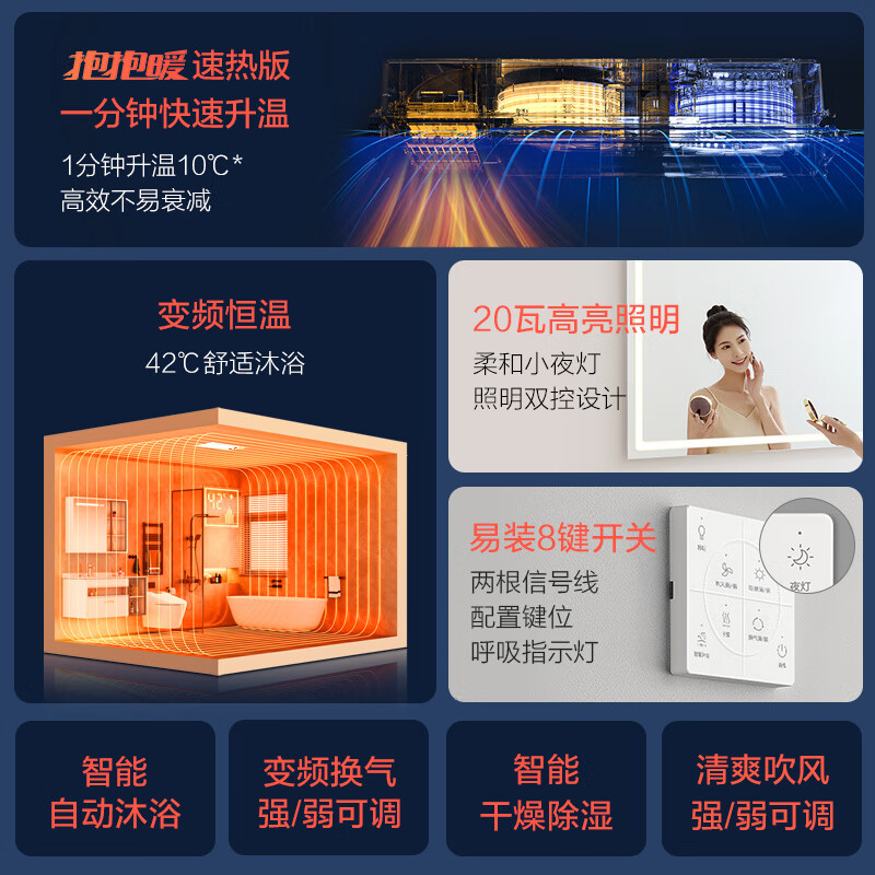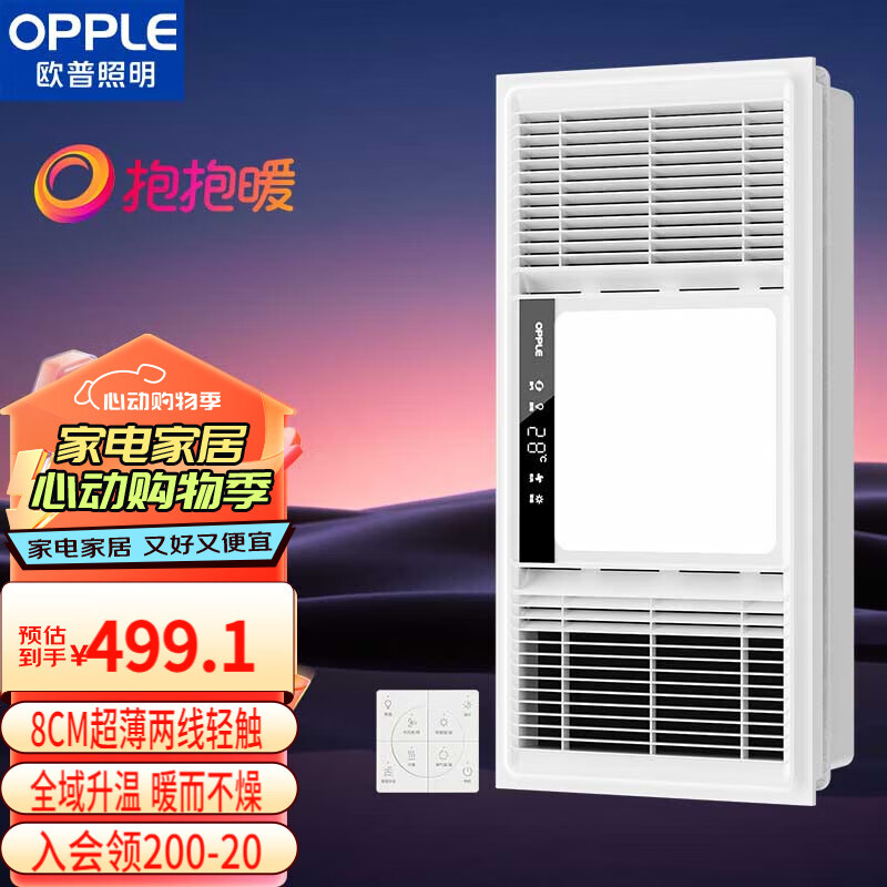 欧普(OPPLE)超薄变频恒温风暖浴霸灯照明排气一体暖风机浴室集成吊顶换气价格:499.10元!