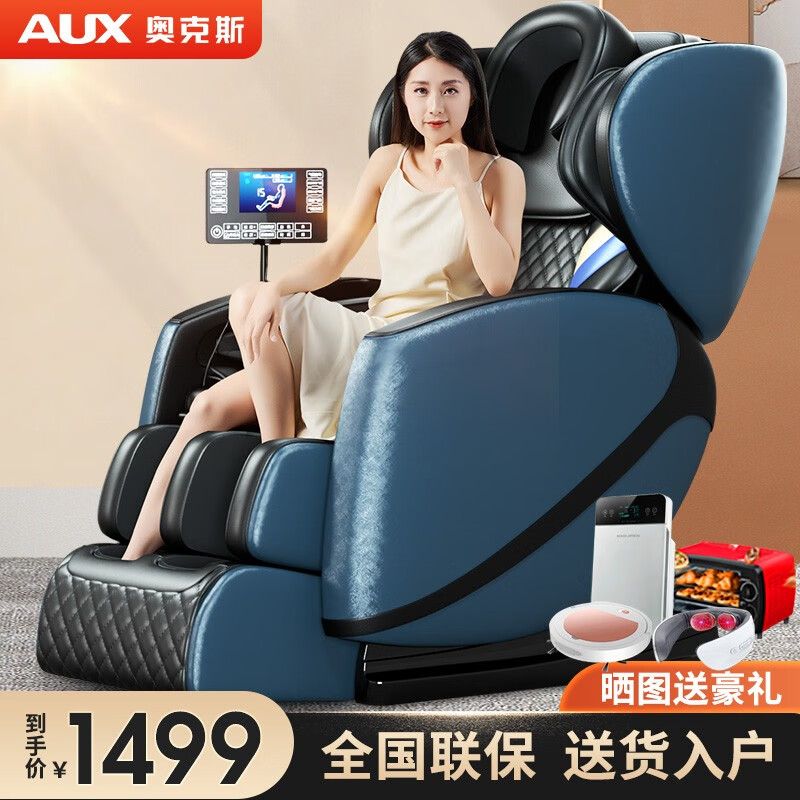 奥克斯(AUX)按摩椅家用全自动全身太空舱揉捏零重力颈腰背部蓝牙音乐智能豪华老人按摩椅送父母礼物 豪华款(液晶触控+足底按摩+全身气囊)价格:1499.00元!