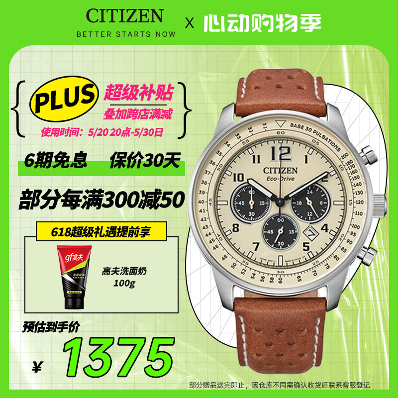 西铁城(CITIZEN)手表男日韩表FF系列光动能三眼盘皮带商务情人节礼物CA4500-16X价格:1575.00元!