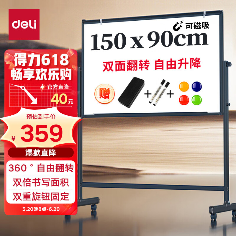 得力家用高端款90*150cmH型支架式白板 双面书写可移动升降儿童画板/办公会议白板黑板/写字板50093价格:399.00元!