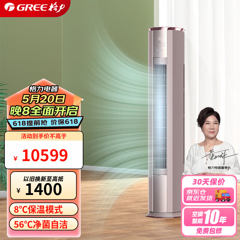 格力(GREE) 3匹 京御 新一级能效 变频冷暖 离子净化 净菌自洁 立柜式空调柜机 KFR-72LW/(72587)FNhAb-B1价格:10599.00元!