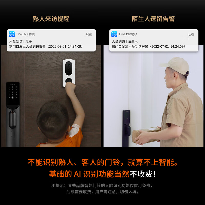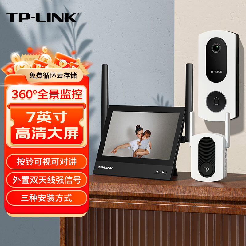 TP-link 可视门铃摄像头家用监控智能摄像机电子猫眼智能门铃无线wifi访客识别视频通话超清夜视 TL-DB53E价格:789.00元!