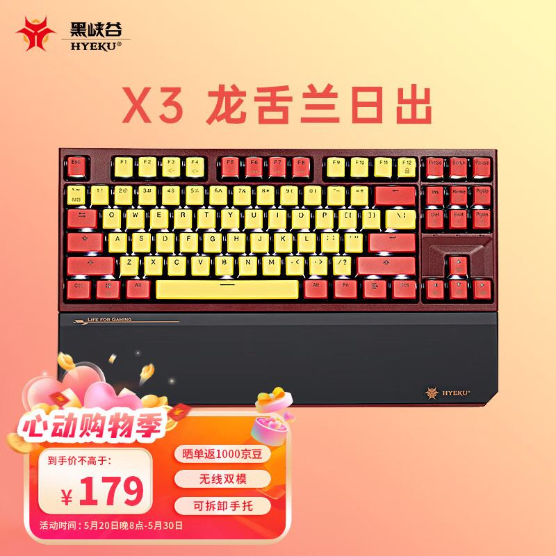 黑峡谷(Hyeku)X3 87键有线/无线双模机械键盘游戏办公PBT键帽凯华BOX新轴附卡扣腕托 龙舌兰日出 玫瑰红轴价格:199.00元!