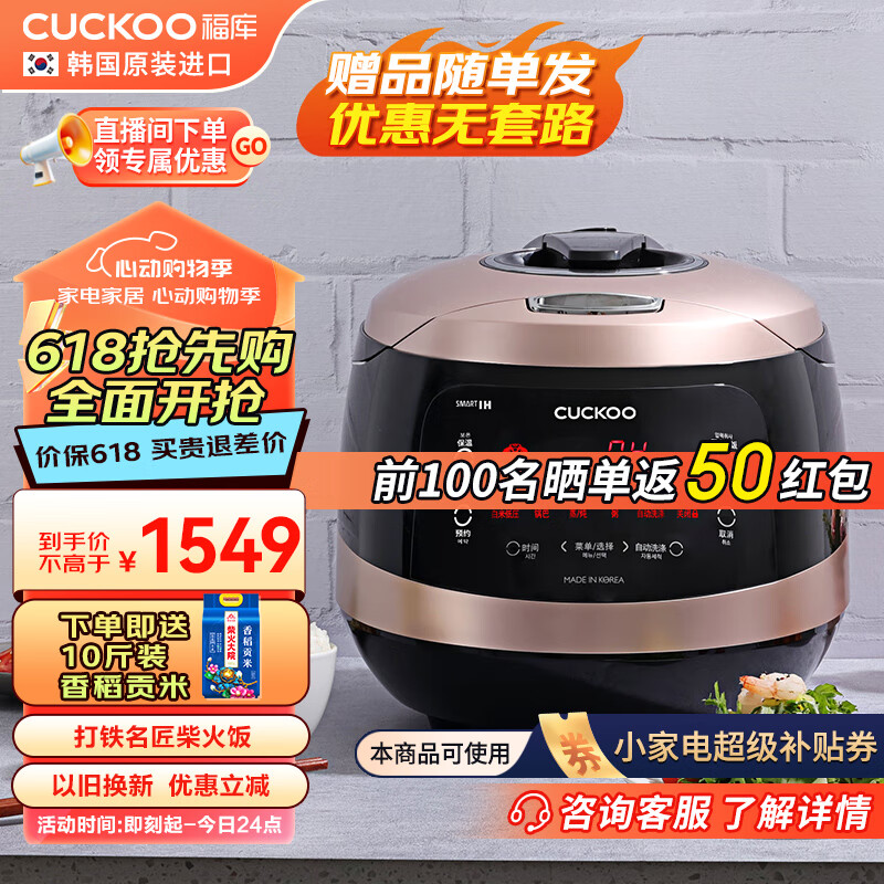 福库CUCKOO韩国进口高压IH加热智能预约多功能家用电饭煲锅5升3-10人份CRP-HWF108FH价格:1799.00元!