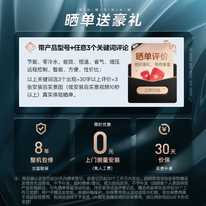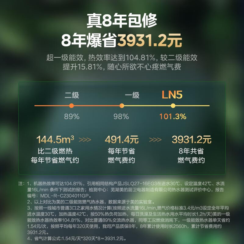 美的(Midea)18升燃气热水器 天然气 超一级能效节能 水伺服恒温 增压零冷水 防冻 大水量 JSLQ30-18LN5影青价格:2699.00元!