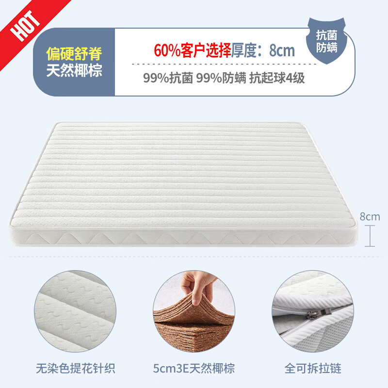 亿隆(yilong)椰棕床垫硬棕垫薄床垫可定制榻榻米棕榈乳胶床垫8CM 提花80*200价格:335.40元!