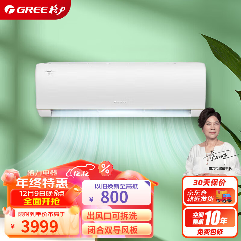 格力(GREE) 1.5匹 京畅 新一级能效 变频冷暖 高温自洁 壁挂式空调挂机 KFR-35GW/(35597)FNhAa-B1(JDWIFI)价格:3999.00元!