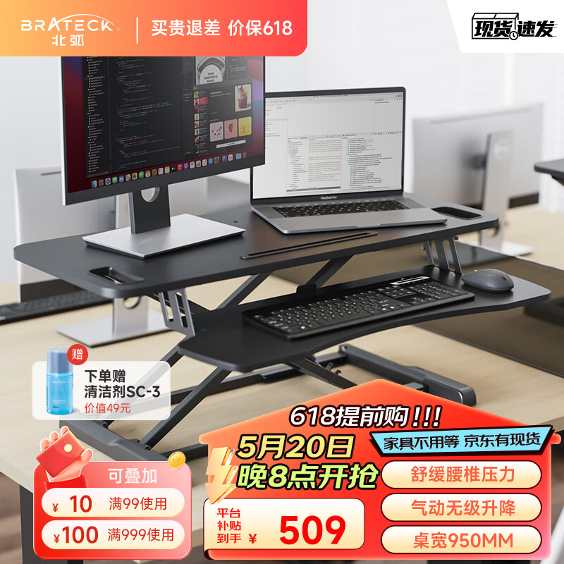 Brateck升降电脑桌 北弧站立办公升降台 站立式电脑升降支架 D450L黑价格:559.00元!