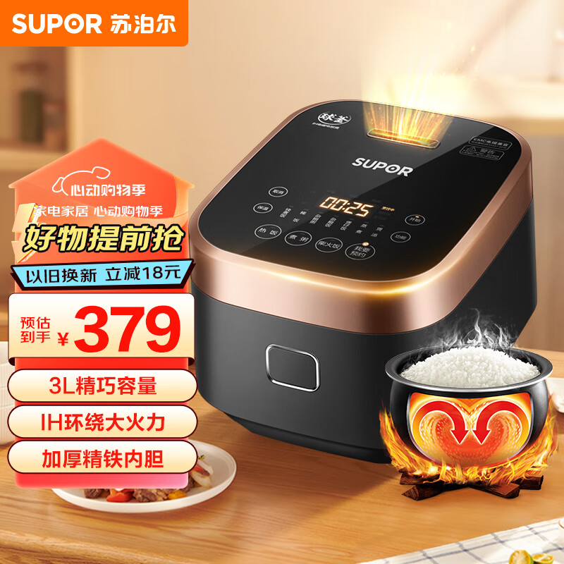 苏泊尔(SUPOR)电饭煲家用3-4个人电饭锅3LIH加热球釜内胆电饭锅杂粮饭多功能家用电饭煲SF30HC749新老品随机发货价格:429.00元!