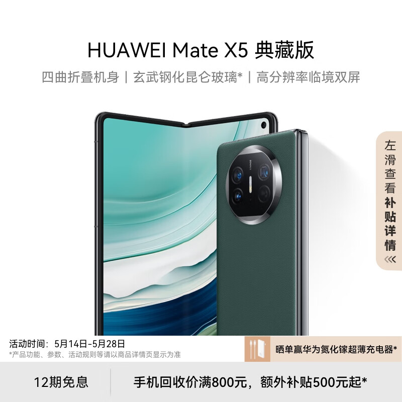 华为(HUAWEI) Mate X5 典藏版 折叠屏手机 16GB+1TB 青山黛价格:16999.00元!