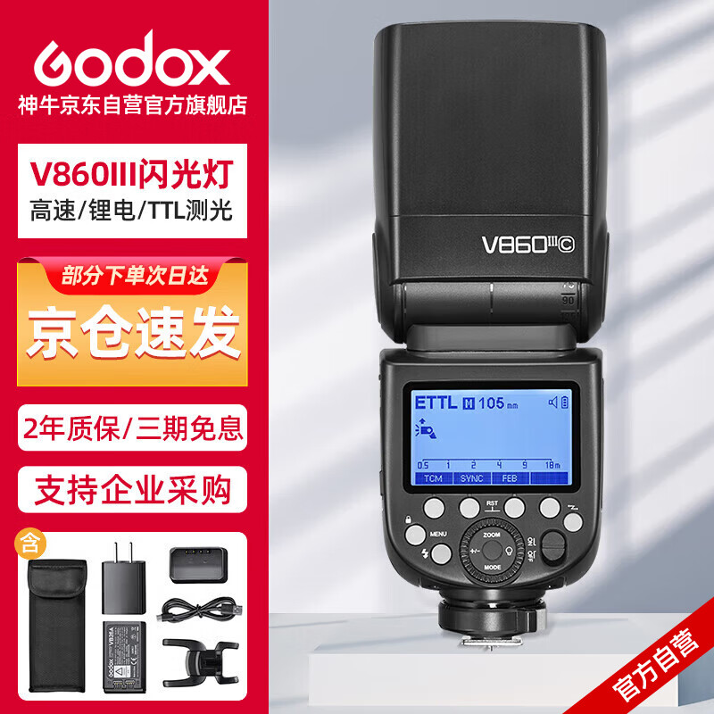 神牛V860III三代机顶闪光灯佳能单反微单热靴闪光灯单反机顶灯高速同步离机TTL自动测光锂电机顶灯价格:1088.00元!