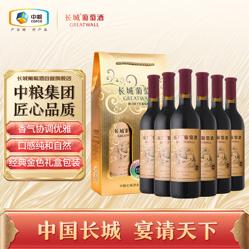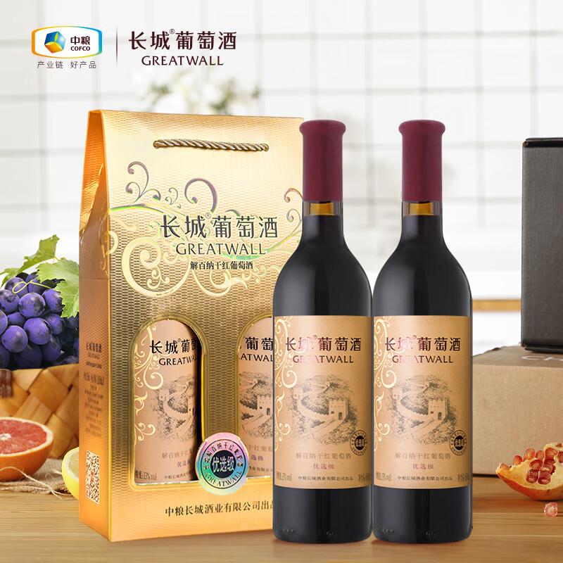 长城 优选级解百纳干红葡萄酒 650ml*2瓶*3盒 整箱装价格:225.00元!