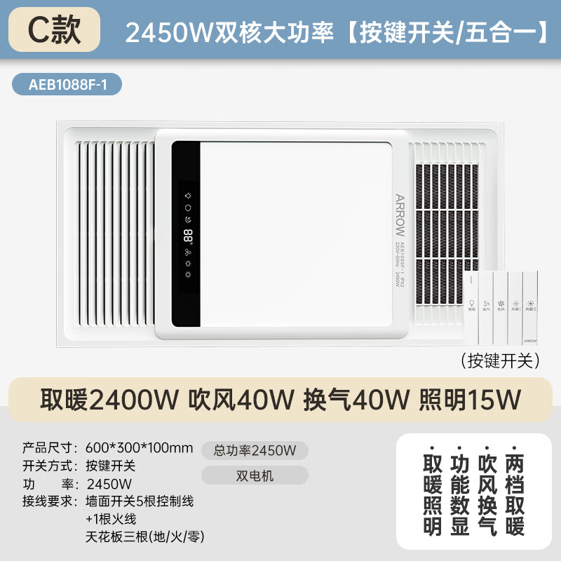 功能:风暖,照明,换气,数字显示,吹风