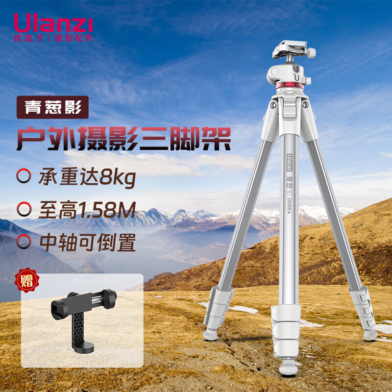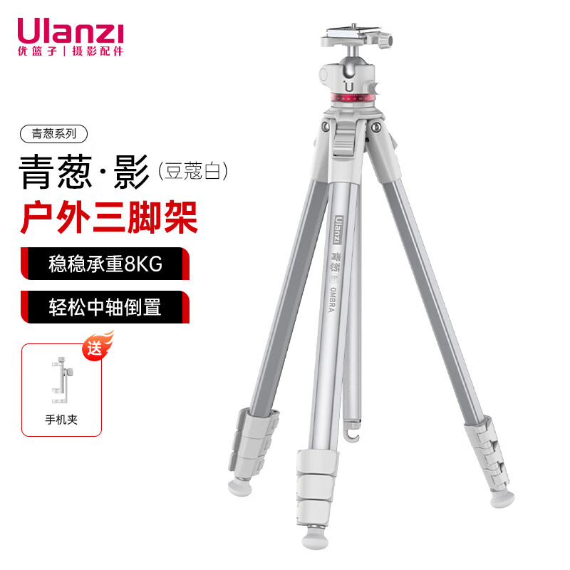 ulanzi优篮子 青葱 影(豆蔻白)户外异形脚管三脚架摄像机单反云台摄影拍照便携360°球形云台专业支架价格:228.00元!