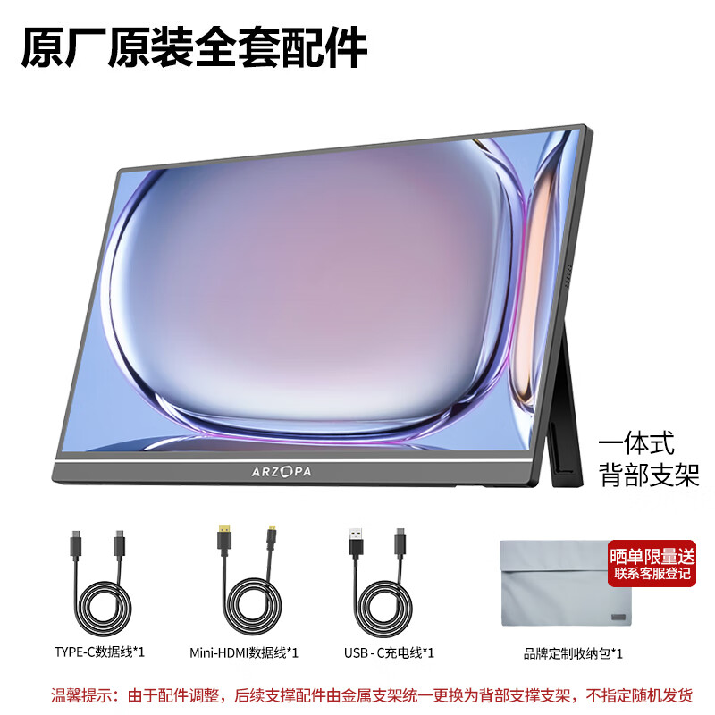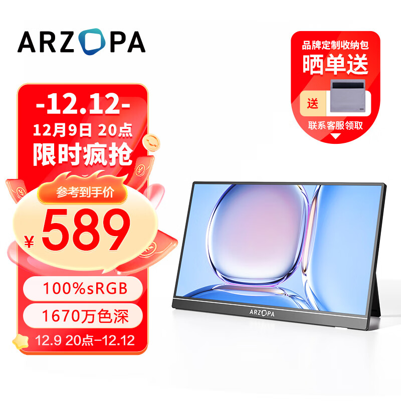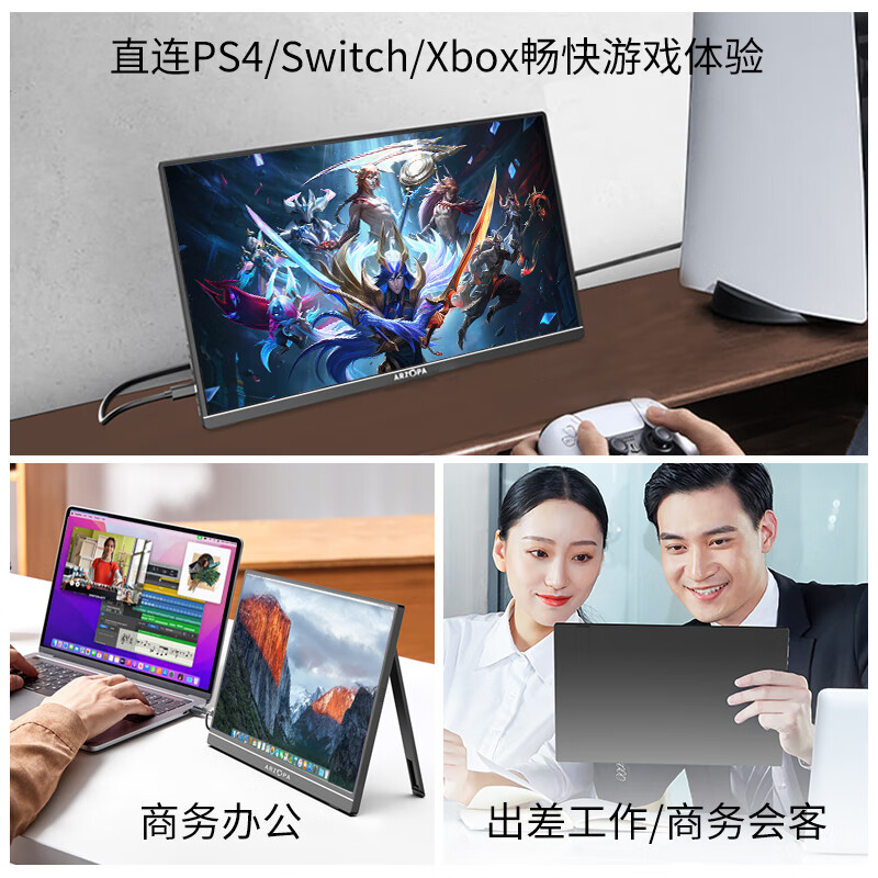 ARZOPA 16.1英寸100%sRGB 便携式显示器 IPS屏 电脑手机笔记本一线直连扩展屏 PS4/5 SWITCH显示副屏 A1C价格:709.00元!