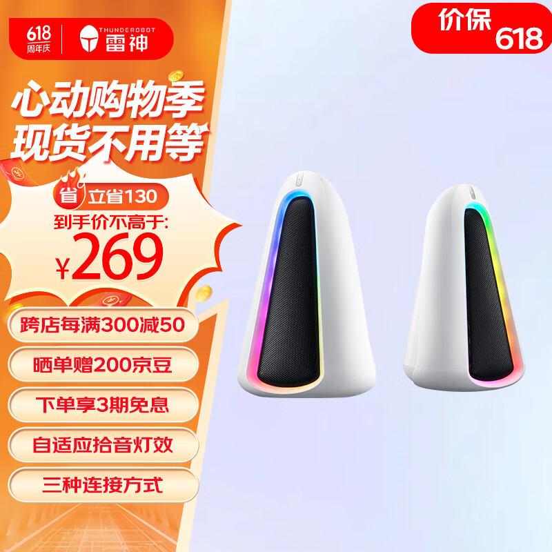 雷神(ThundeRobot)S10pro 重力场双模立体声桌面游戏音箱 2.0电竞音响低音炮蓝牙5.3电脑多媒体家用音箱RGB灯效价格:319.00元!