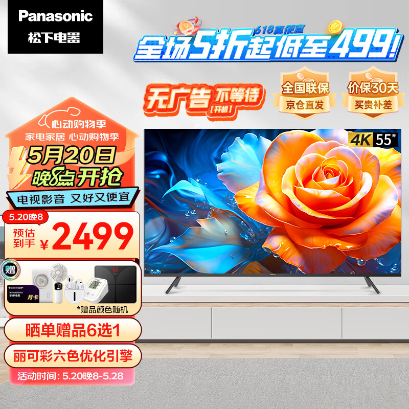 松下(Panasonic)电视LX560 55英寸 丽可彩4K屏MEMC HDR10 蓝牙语音 开机无广告智能电视机 TH-55LX560C价格:2499.00元!