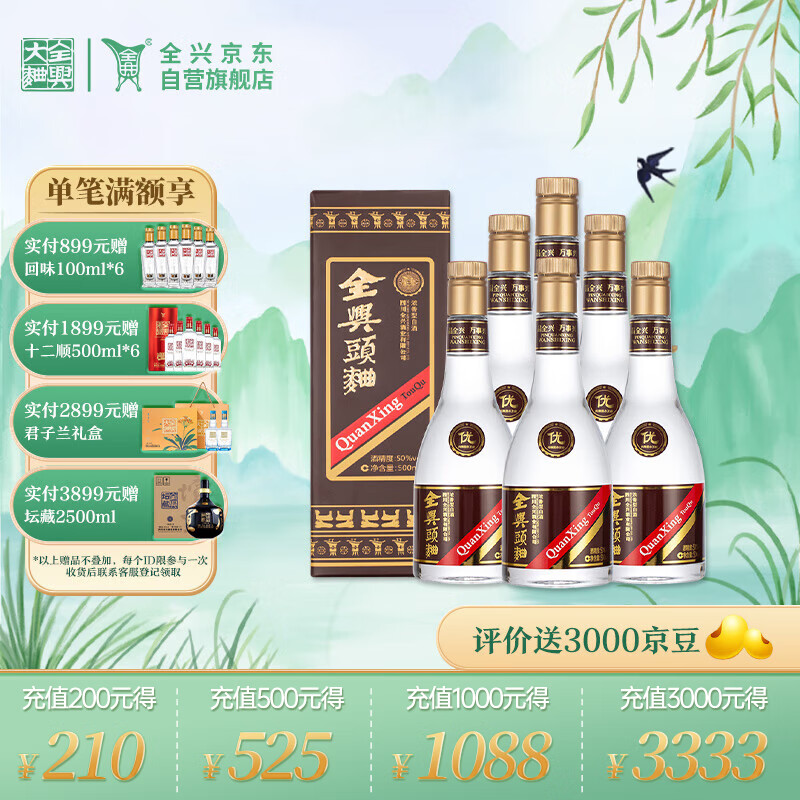 全兴 全兴头曲复刻 浓香型白酒50度500ml*6瓶 整箱装 过年送礼价格:340.00元!