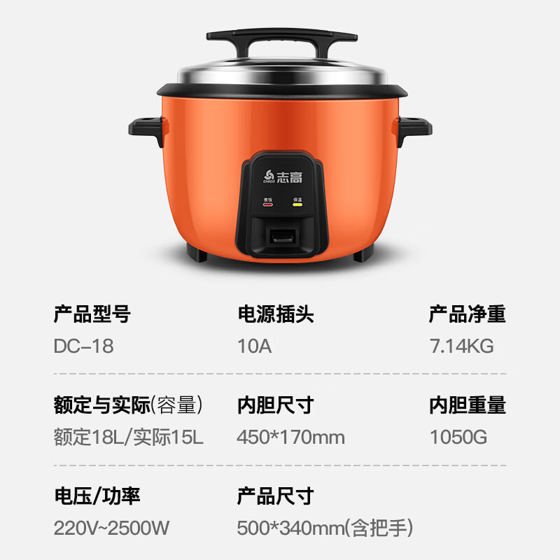 志高(CHIGO)电饭煲商用电饭锅食堂酒店餐厅特大号老式大容量保温蒸饭煲煮饭锅10人20人以上家用 DC-18价格:359.00元!