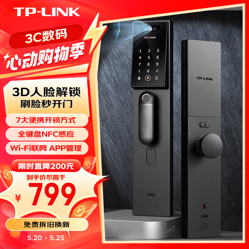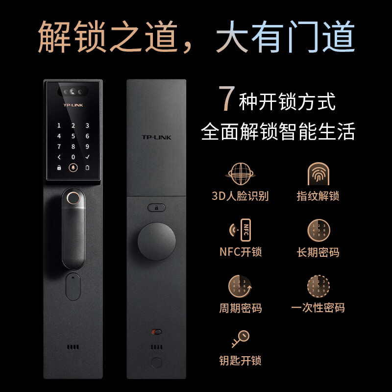 TP-link 人脸识别智能门锁 全自动指纹锁密码锁 家用电子锁防盗门锁入户门 C级锁芯 NFC刷脸开门WiFi SL41价格:839.00元!