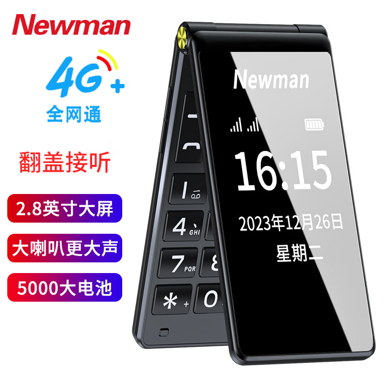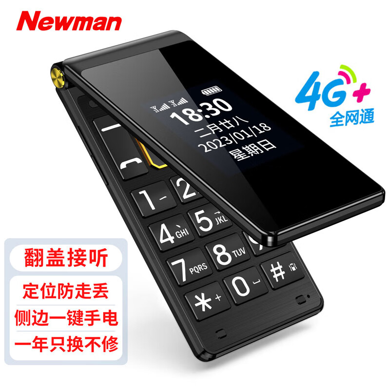 纽曼(Newman)F6 4G通翻盖老人手机 双卡双待超长待机 大字体大声音大按键老年机 学生备用功能机儒雅黑价格:168.00元!