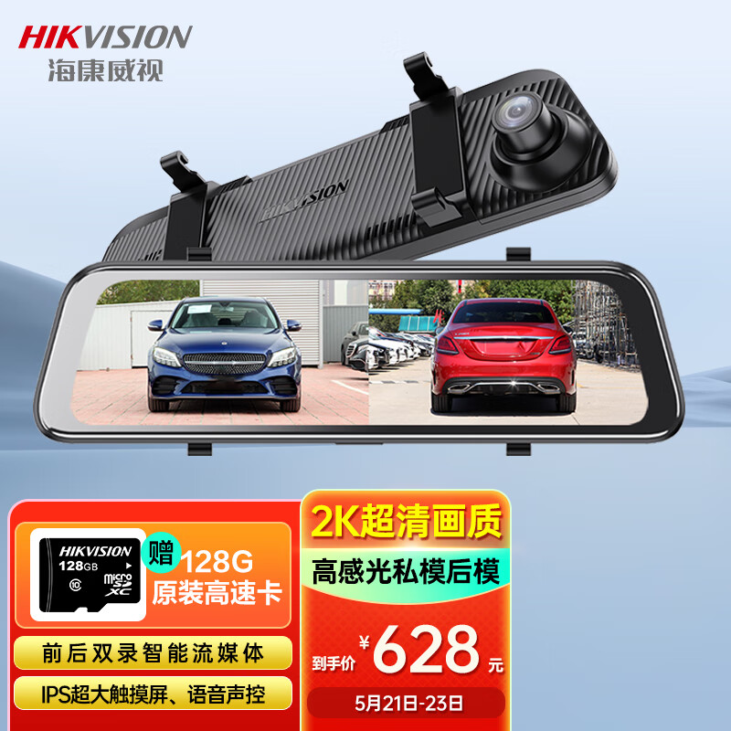 HIKVISION海康威视N6Pro行车记录仪 2K超清星光夜视前后双录流媒体后视镜价格:628.00元!