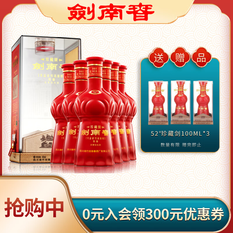 剑南春 珍藏级 52度 500ml*6瓶 整箱装 浓香型白酒价格:5028.00元!
