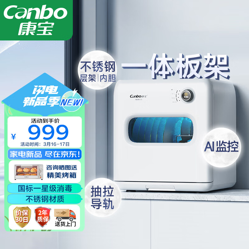 康宝(Canbo)消毒柜 台式 家用 小型桌台面厨房餐具碗筷 婴儿迷你紫外线茶水杯砧板消毒碗柜XDZ45-Z1价格:999.00元!