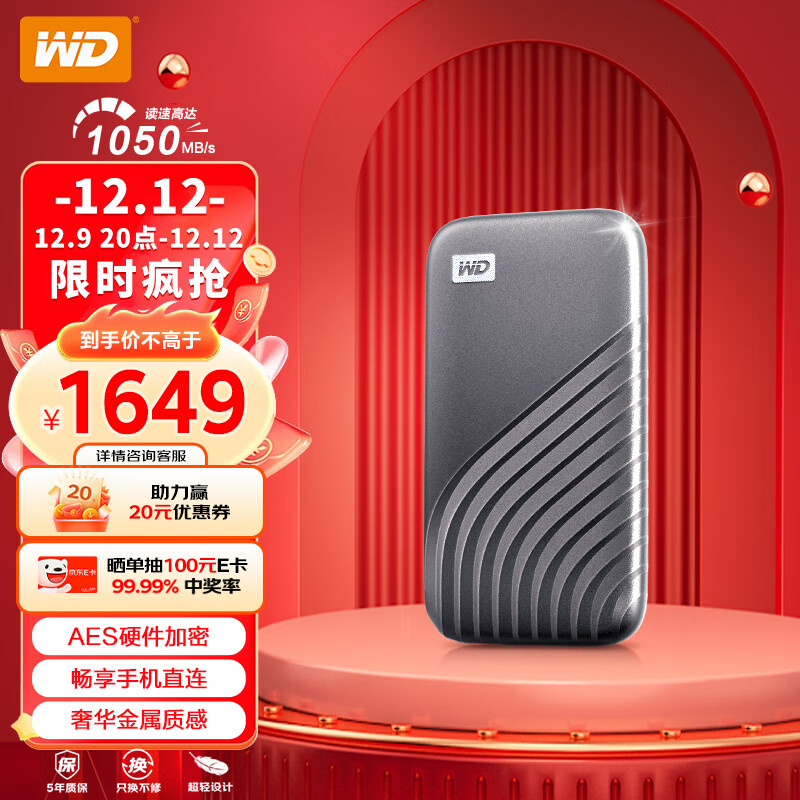 西部数据(WD)4TB NVMe 移动固态硬盘(PSSD)My Passport随行SSD type-c接口 1050MB/s 手机笔记本外置外接价格:1799.00元!