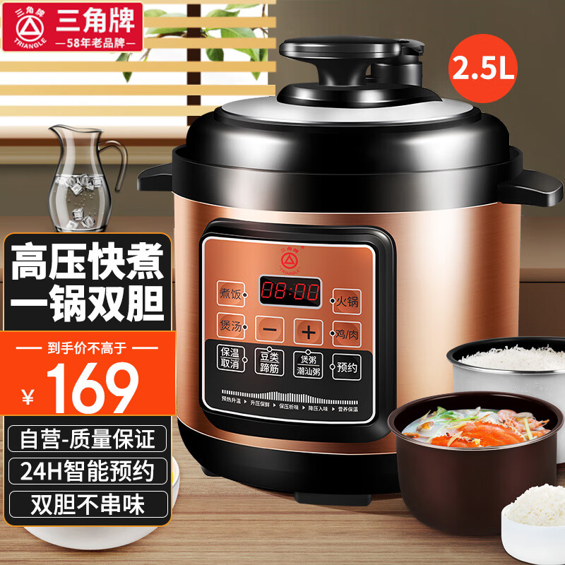 三角牌(Triangle)电锅家用 高压锅小容量1-2-3人迷你小型多功能智能电高压锅高压电饭煲双胆 2.5升 1-3人适用价格:169.00元!