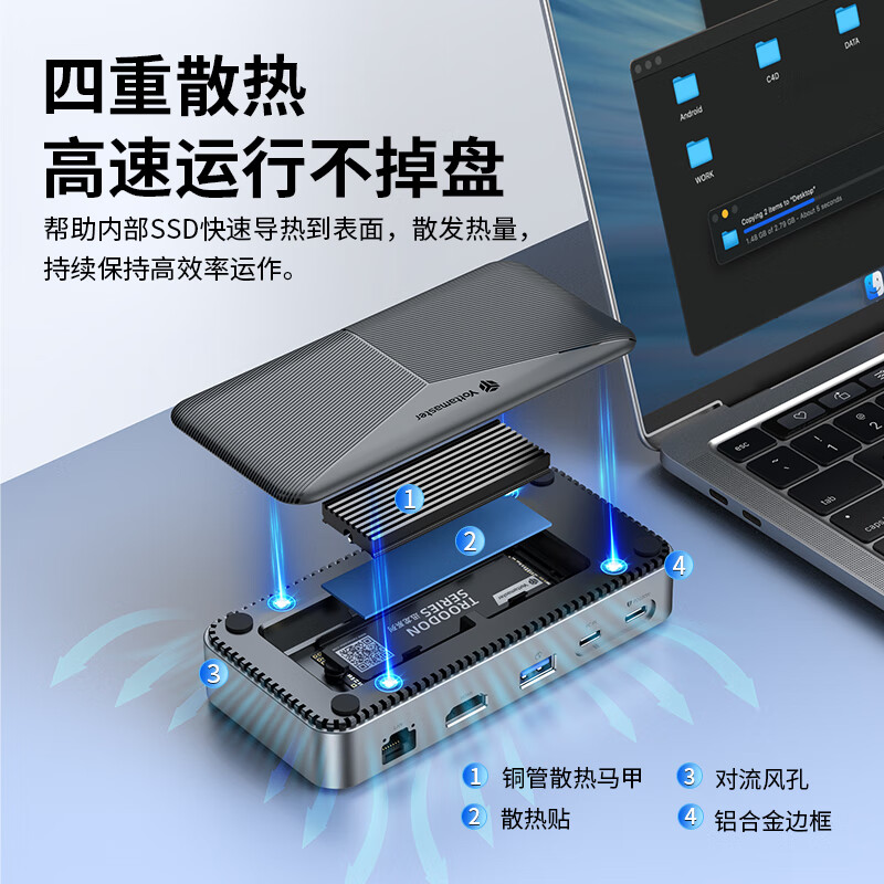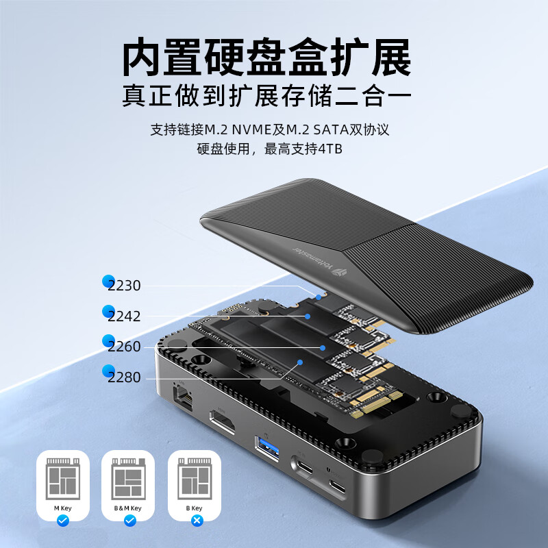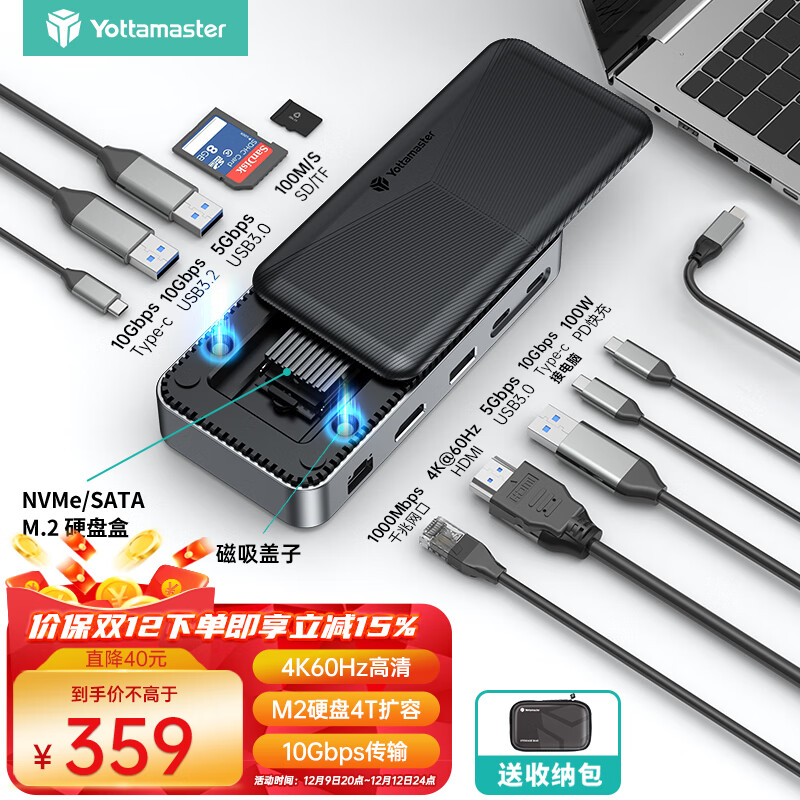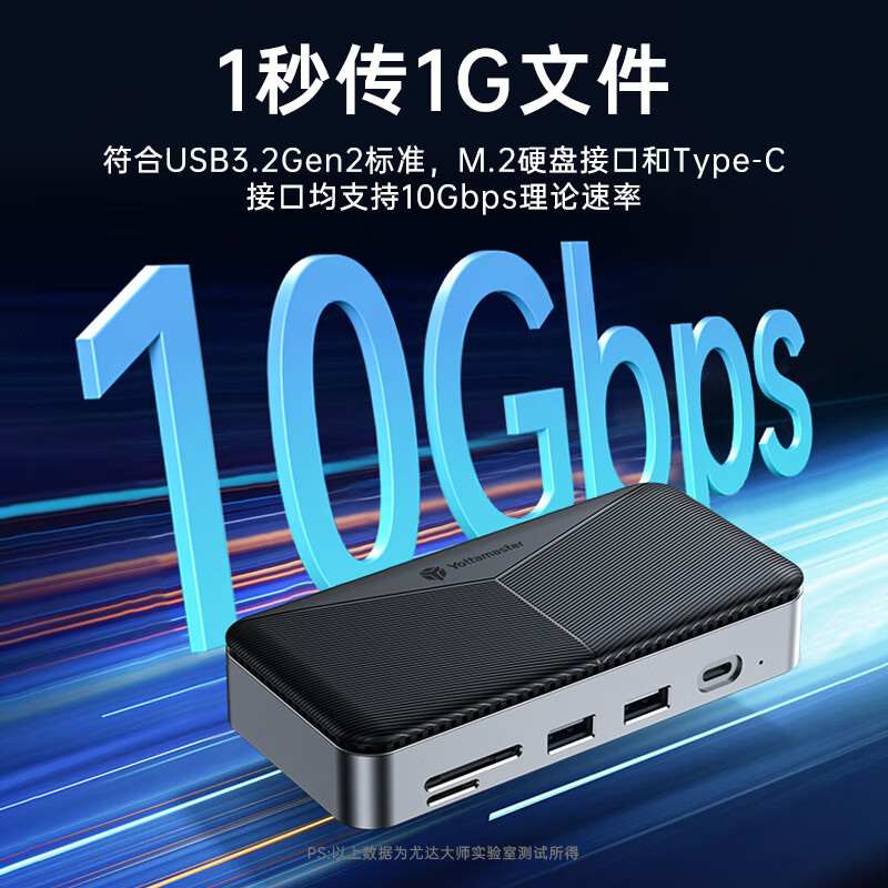 尤达大师 扩展坞Type-C M.2硬盘盒拓展坞NVMe/SATA双协议固态硬盘盒分线器USB3.2外置盒 铝合金价格:422.00元!