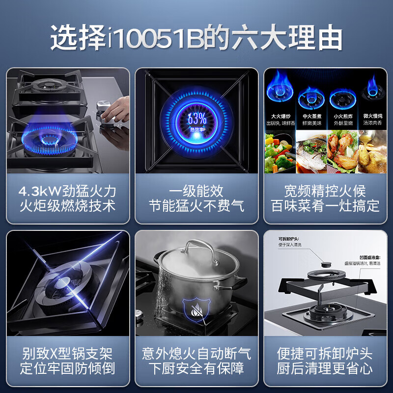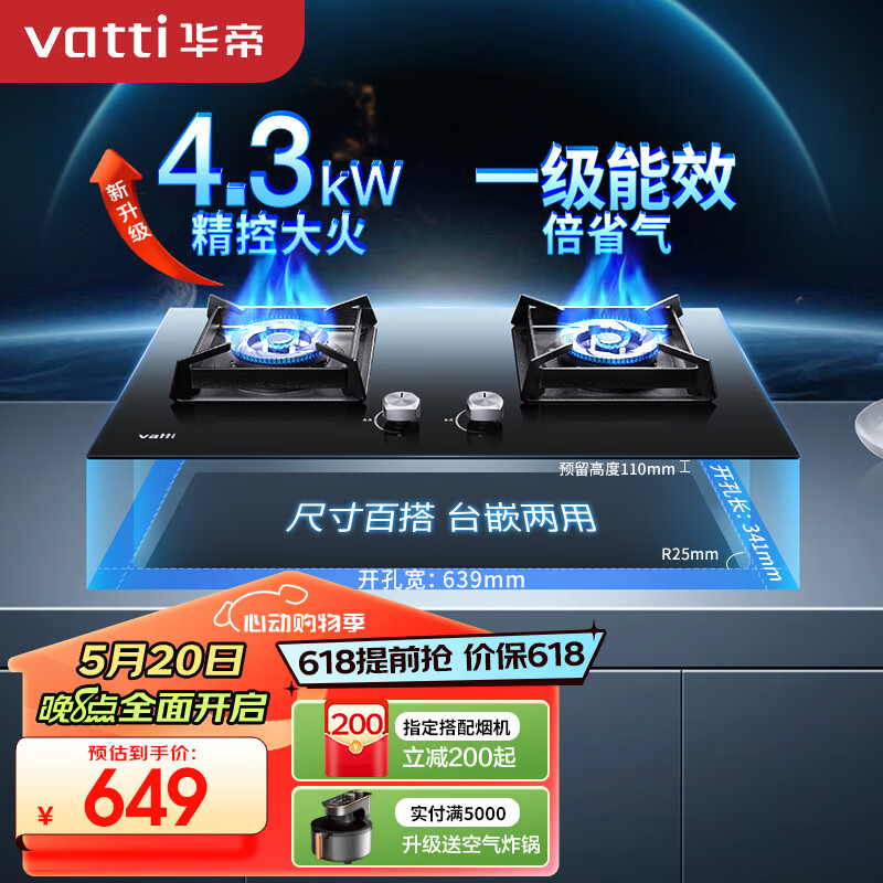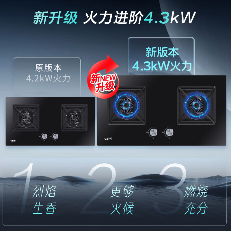华帝(VATTI)燃气灶家用升级4.3kW火力台式嵌入式易打理钢化玻璃熄火保护双灶台灶具JZT-i10051B(天然气)价格:649.00元!