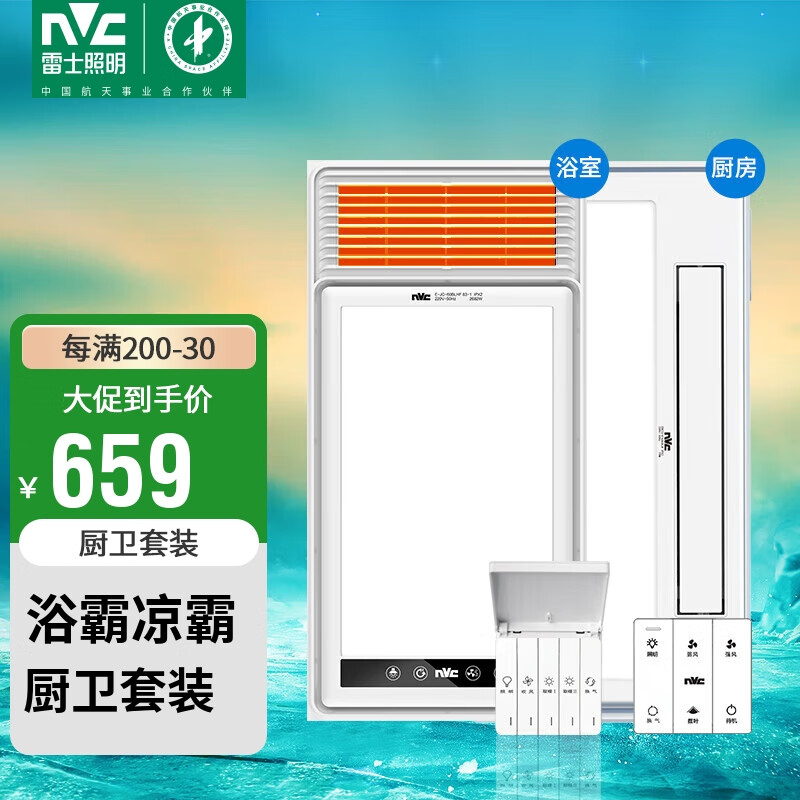 雷士(NVC)双电机大功率取暖器风暖浴霸排气照明一体浴室暖风机+凉霸套餐B价格:829.00元!