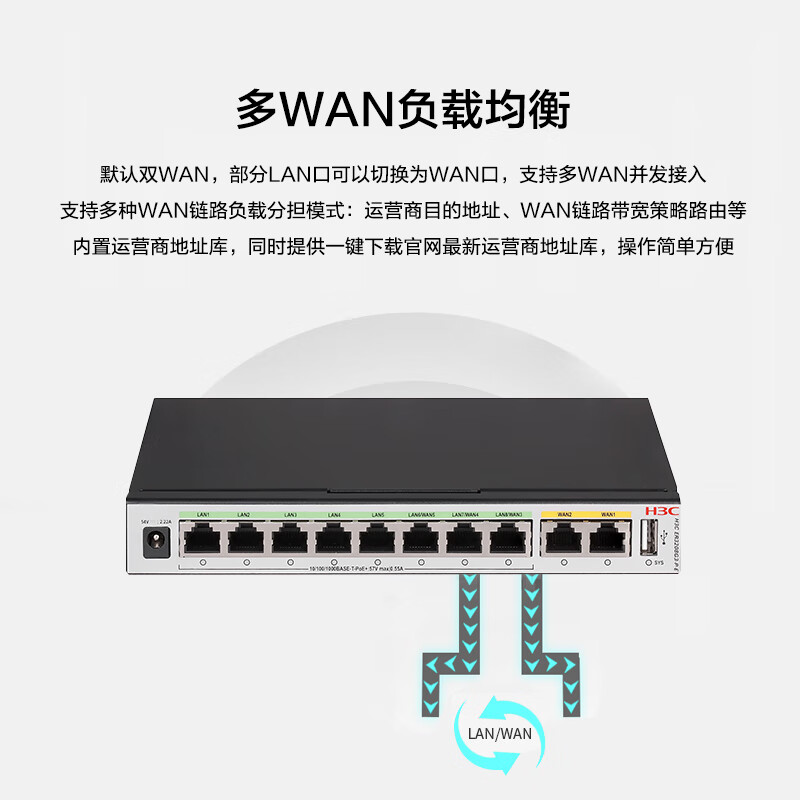 新华三(H3C)8口POE路由器AC一体机 企业级VPN路由器网关控制器 8个POE口/双WAN口/带机250 ER3208G3-P-E价格:1399.00元!