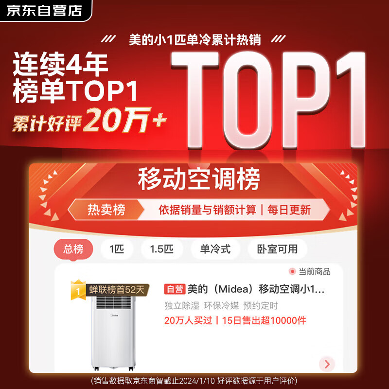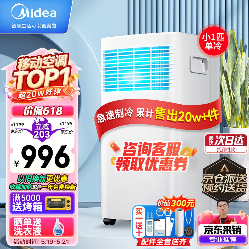 美的(Midea)移动空调小1匹单冷 家用厨房一体机免安装便捷立式空调 KY-15/N7Y-PHA 京仓派送价格:996.00元!