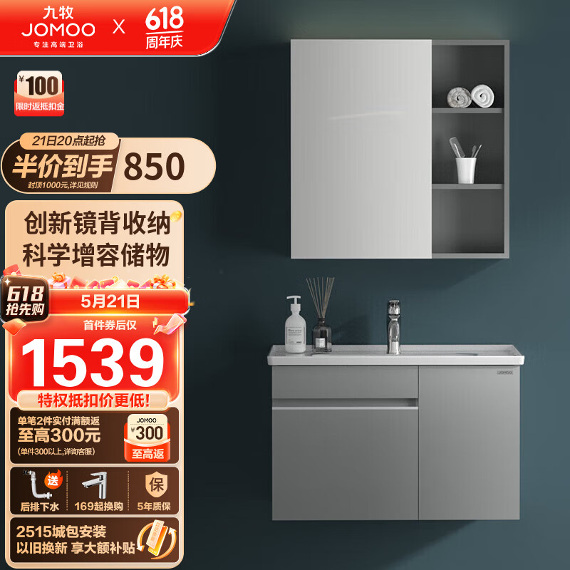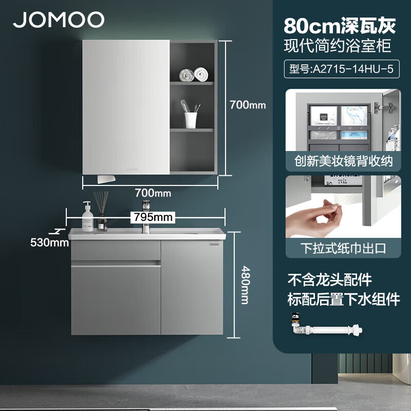 九牧(JOMOO)现代极简浴室柜陶瓷一体盆洗脸盆大收纳柜组合80cm A2715-14HU-5价格:1999.00元!