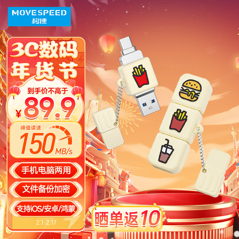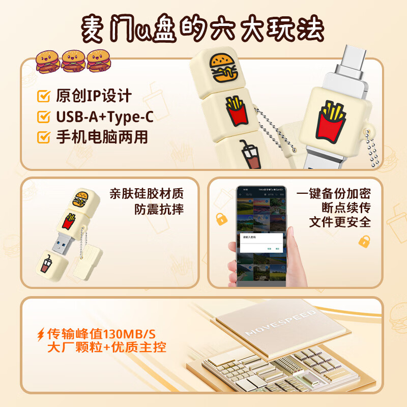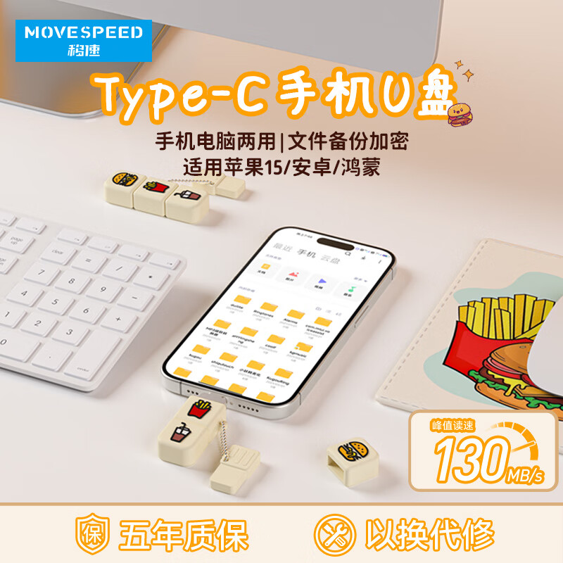 移速(MOVE SPEED)128GB Type-C手机u盘 USB3.1 支持iPhone15系列 安卓/鸿蒙/IOS 车载电脑U盘 卡通麦门系列价格:99.90元!