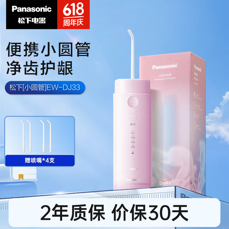 松下(Panasonic)冲牙器洗牙器水牙线 便携高频脉冲水流 小巧便携伸缩小圆管 生日礼物送男友送女友DJ33粉色价格:323.00元!