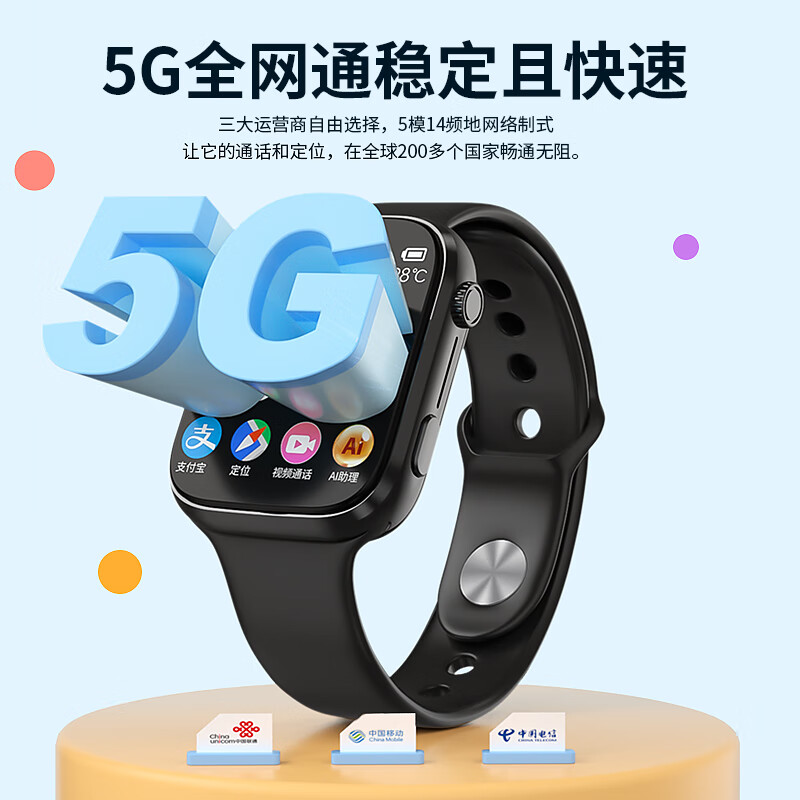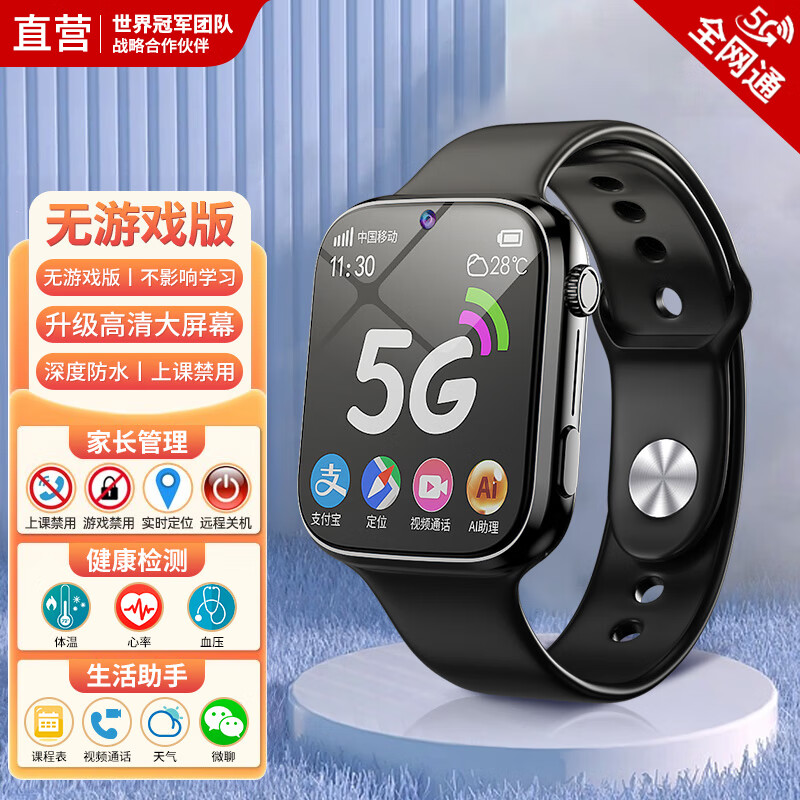 STIGER 天才儿童智能电话手表可插5G卡4G通儿童学生初高中生青少年男女孩成人款手表 高配版黑色【健康检测-无游戏】 5G版本价格:129.00元!