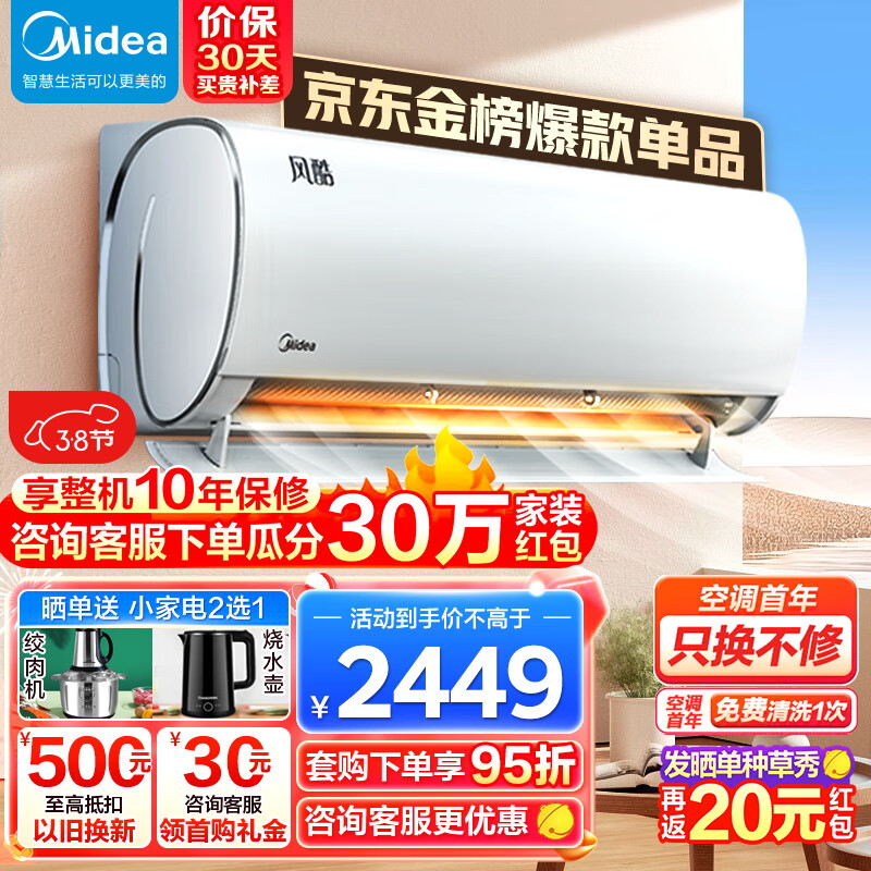 美的(Midea)空调 大1匹 风酷 新一级能效变频冷暖 自清洁 智能家电 家用壁挂式空调挂机 KFR-26GW/N8XHC1Ⅱ价格:2499.00元!