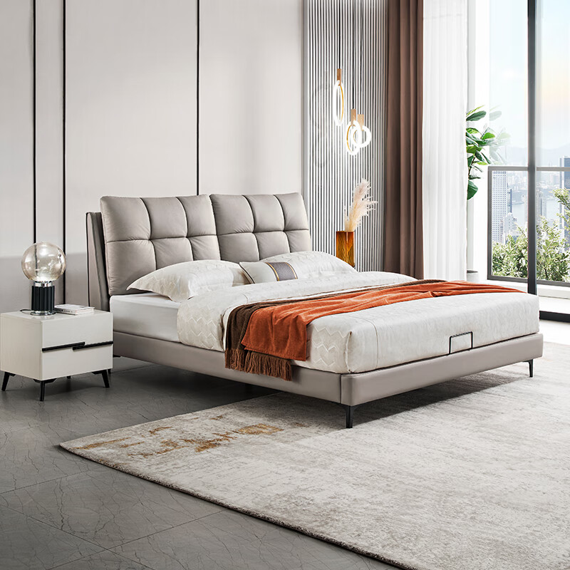 3、618活动的时候买的,价格还是挺划算的,到货之后师傅马上就给安装好了,全皮的,颜色好看,整体质感做工也非常好,且没有异味,床垫也很舒服,整体性价比很高!赞!顾家家居旗舰店,质量很好,款式新颖,价格实惠,好评。外观好好看,全套顾家,很满意很好,物流很快,东西很给力,性价比很高!顾家家居的床产品和页面描述一致安装师傅挺不容易的。颜色很简约大气,和我家风格很般配。呵呵呵非常非常的满意,床睡起来很舒服,朋友的推荐,真的很好,喜欢顾家