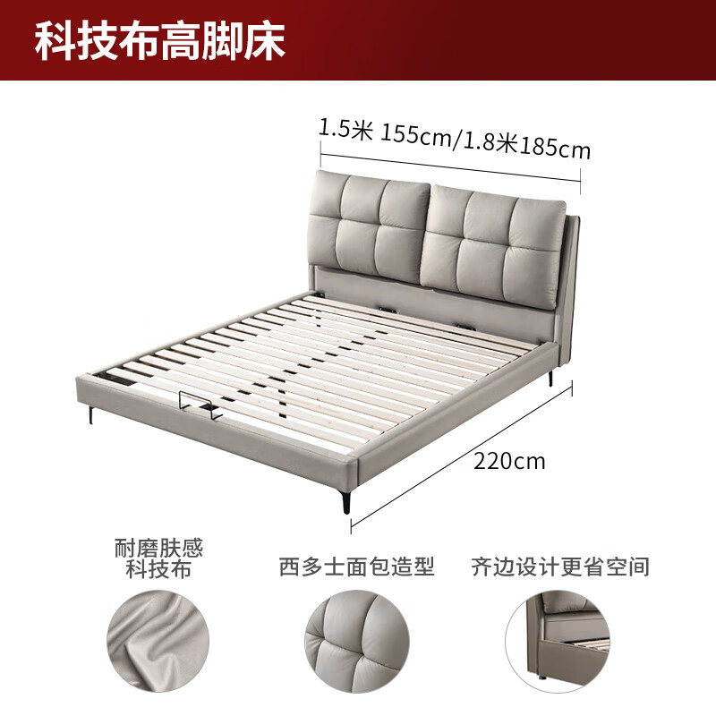 顾家家居 床 现代简约科技布双人床 国民家居西多士面包软床 1.8*2.0米价格:1999.00元!