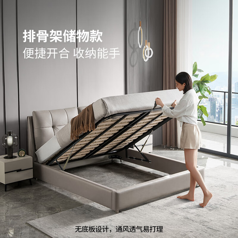 1、排骨架很结实,床头也不占地方,布料摸着很有质感,物流也比较给力,性价比很好。