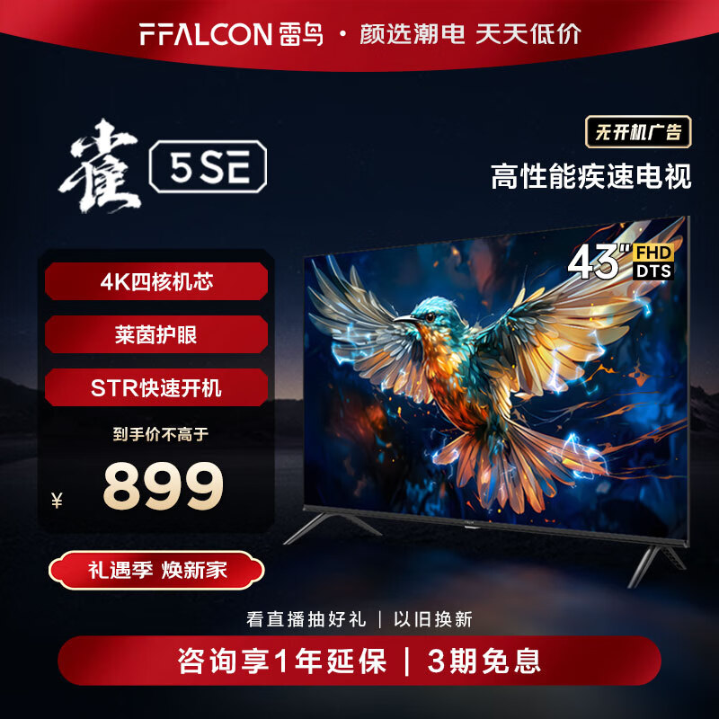 FFALCON雷鸟 雀5SE 43英寸电视 全高清超薄屏 1G+8G 教育电视 智能液晶平板电视机以旧换新43F175C价格:899.00元!
