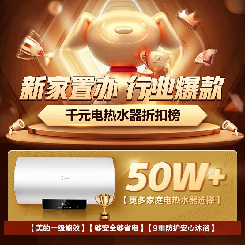 美的(Midea)储水式电热水器80升3300W速热5倍澎湃增容一级能效节能省电加长防电墙智能双重杀菌F8022-X1(S)价格:1079.00元!