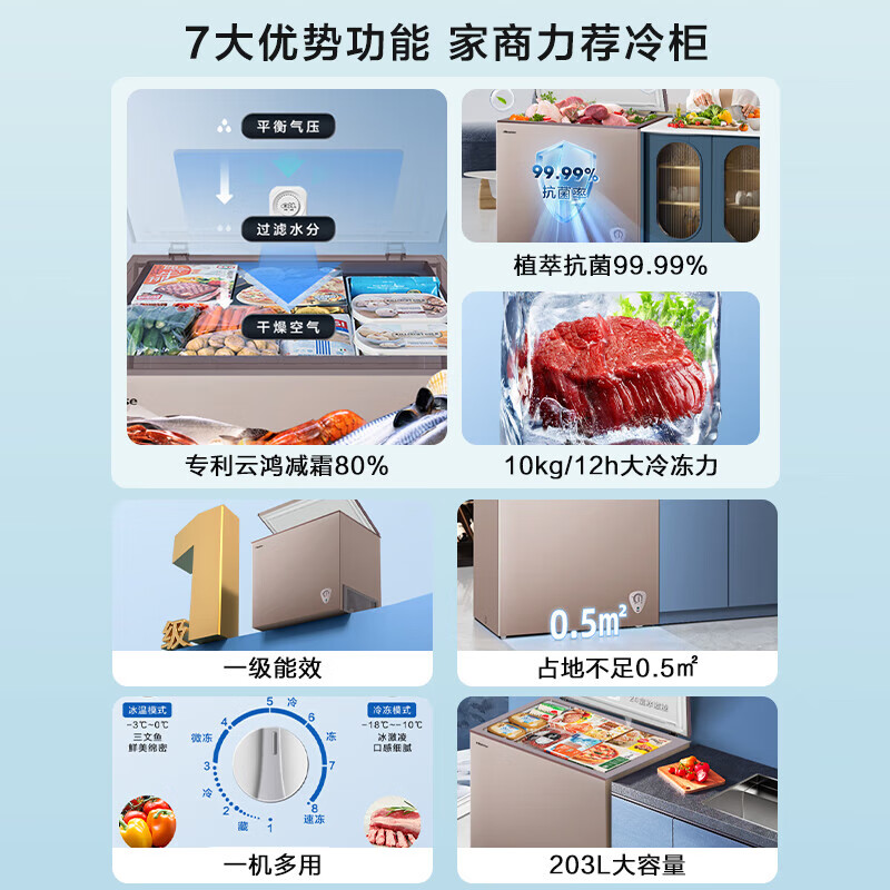 海信(Hisense)203升冰柜家用商用冷柜 冷藏冷冻转换柜一级能效节能低噪 家用母乳茶叶柜保鲜柜 BD/BC-203NUD以旧换新 203L价格:1039.00元!