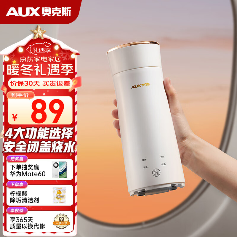 奥克斯(AUX)便携式烧水壶 电热水壶 旅行电热水杯保温烧水杯办公室养生泡茶烧水加热电炖杯情人节礼物HX-DR01A价格:89.00元!