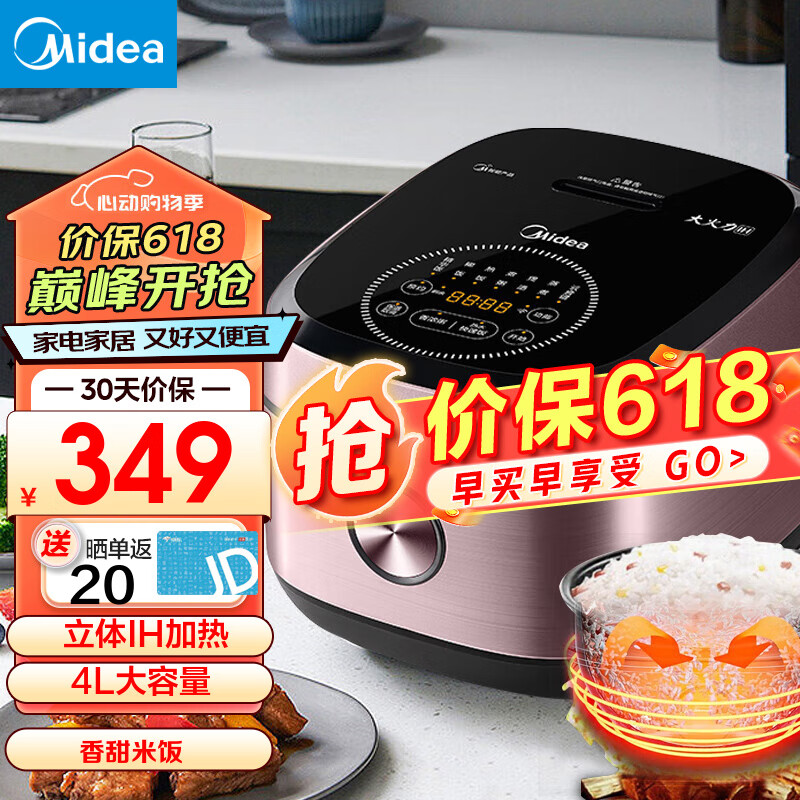 美的(Midea)电饭煲 家用IH加热智能触控家用升级预约多功能电饭锅一级能效 家庭款 立体IH加热 4L价格:499.00元!