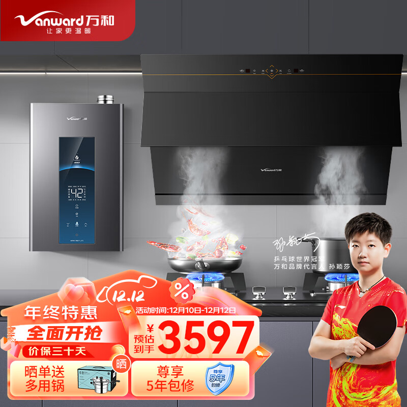 万和(Vanward)烟灶热三件套 侧吸式自动清洗 油烟机燃气灶具热水器厨房多件套装DJ738+B7L51+MLS5D16(天然气)价格:3597.00元!