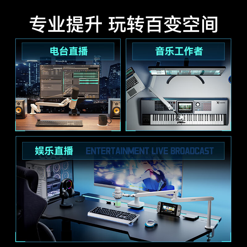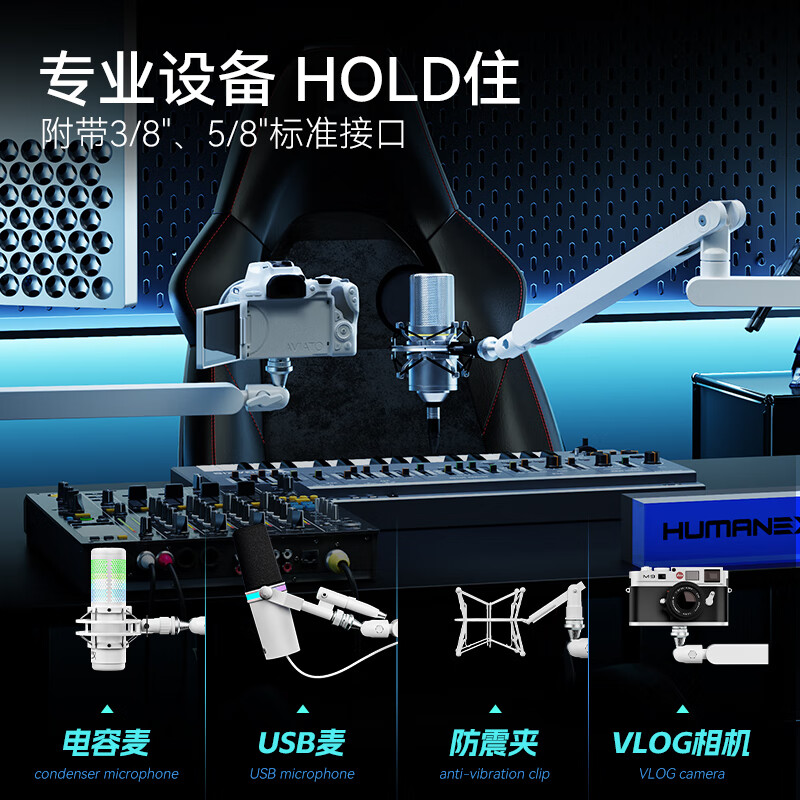 松能X麦克风话筒支架悬臂桌面台式支架主播直播3kg承重防震三段式折叠万向直播话筒 AX-3G价格:388.00元!